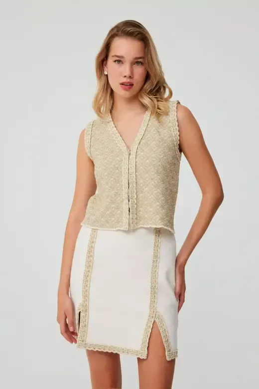 Bej Dantel Bluz